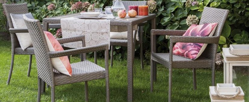 Molto confortevole è la soluzione in poly-rattan, una fibra sintetica che riprende il motivo-trama del tradizionale rattan e vimini. Ma al contrario, questa soluzione rende tavoli e sedie da giardino più resistenti, più leggere e facilmente pulibili.