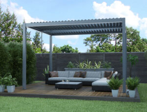 Dunque la copertura superiore delle pergola bioclimatica è costituita da lamelle motorizzate o manuali che possono essere inclinate e orientate, permettendo di creare ombra o far entrare aria all’interno della pergola per mantenere l’ambiente ventilato.