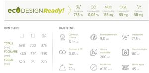 Infine, Sagra CP genera un potere calorifero di 9kW ed è un grado di riscaldare circa 200mc al massimo. In aggiunta questa linee di stufe a legna possiedo la certificazione ambientale a 4 stelle, richiesta a partire dal 1 Gennaio 2022 per installare questi prodotti secondo la normativa relativa all’ecodesign 2022. Con questa stufa è inoltre possibile in alternativa godere degli incentivi relativi all’ecobonus.