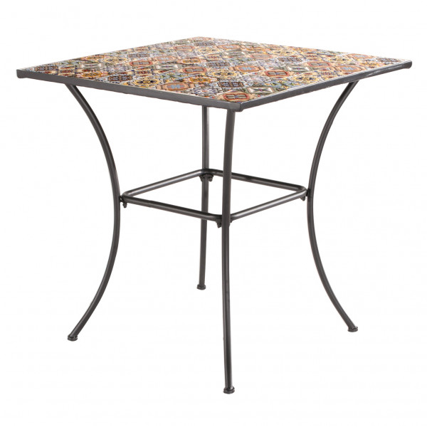 Tavolino da giardino o tavolino esterno ( tavolino in ferro maiolica) quadrato è un complemento d’arredo in metallo verniciato. Si caratterizza soprattutto per la struttura in metallo simile ferro battuto e per il decoro sul piano d’appoggio simile alla classica maiolica. Dunque, si tratta di un pratico tavolino da esterno o da giardino in metallo dall’effetto vintage in ferro battuto. Si tratta del classico complemento d’arredo giardino dalle dimensioni contenute, che lo rendono adatte anche a piccoli spazi, infatti misura 80×80 cm con altezza di cm 75.